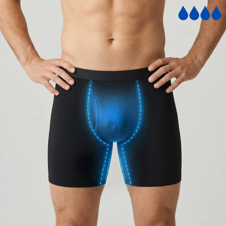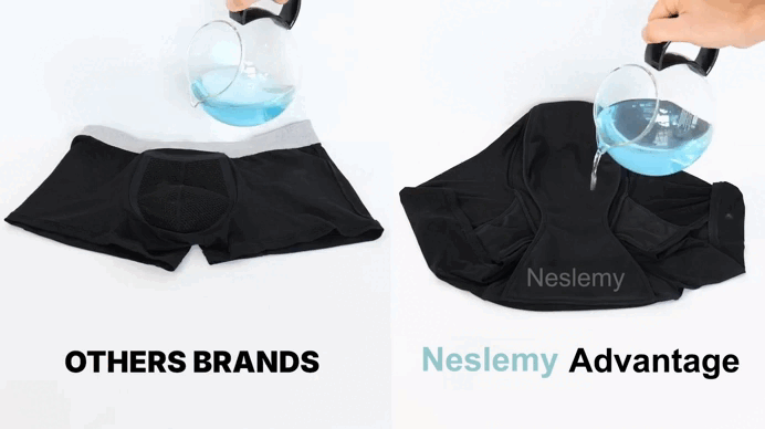 Neslemy is the first boxer brief designed not only for light leaks but especially for moderate leaks. Our Neslemy9-Layer System is built right in. When leaks happen, the top layer quickly pulls moisture away from your skin. The absorbent core locks in liquid and traps odors. The waterproof outer layer keeps everything contained, so nothing leaks through. You stay dry, comfortable, and protected all day, just like wearing regular underwear.